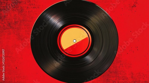 © Lesuna, Obraz premium Vintage Vinyl Record on Red Background