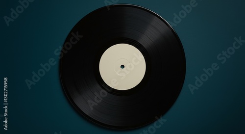 © Firman Dasmir, Obraz premium Vintage vinyl record with blank label isolated on dark teal background