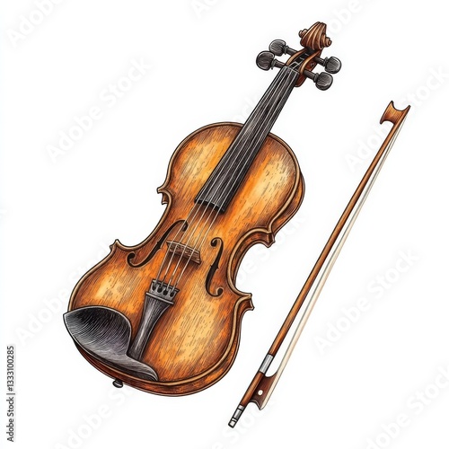 © marfuah, Fototapeta premium Vintage violin and bow isolated on white background.