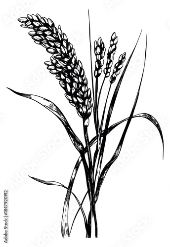 © cac_tus, Fototapeta premium Vintage wheat plant illustration hand drawn sketch