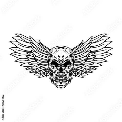 © Ilnaz Ismagilov, Fototapeta premium Vintage winged skulls isolated retro vector illustration on a white background. Great design for any purposes.