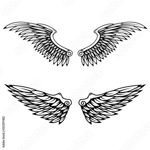 © liubov, Fototapeta premium Vintage wings isolated on white background.
