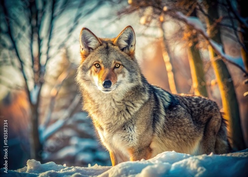 © StudioATC, Fototapeta premium Vintage Winter Wonderland Coyote Photography: Snowy Scene, Wild Animal Portrait