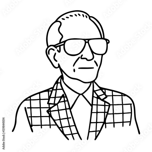 Obraz premium Vintage Wise Elder Figure Portrayed With Glasses Line Art Vector Illustration