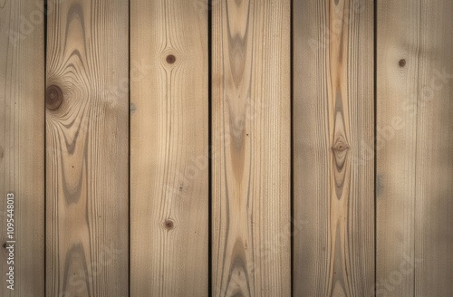 © yuntunen, Naklejka premium Vintage wood panel background with weathered grain and earthy tones