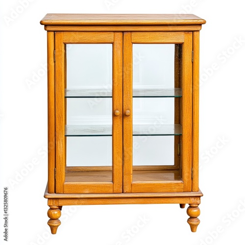 © Chokii.Ns, Obraz premium Vintage Wooden Display Cabinet with Glass Doors and Shelves, Generative AI.