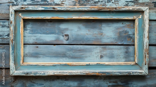 Naklejka premium Vintage Wooden Frame on Distressed Blue Wooden Background