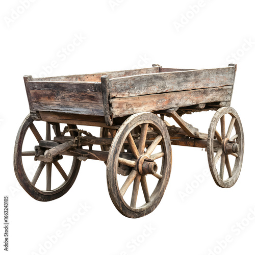 © Aria, Fototapeta premium Vintage Wooden Horse Cart on White Background for Graphic Designs