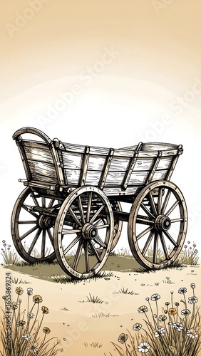 © Alea, Fototapeta premium Vintage wooden wagon in a field