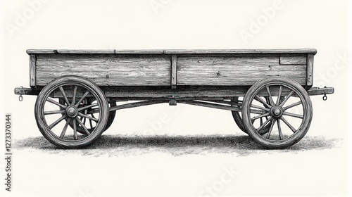 © hazia, Fototapeta premium Vintage wooden wagon, rural setting, isolated, pencil sketch, historical illustration