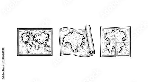 Fototapeta premium Vintage world map illustrations in different styles on a white background