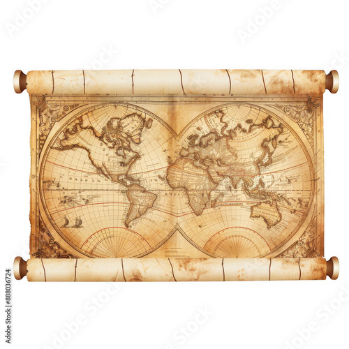 © SRITE KHATUN, Obraz premium Vintage World Map Scroll