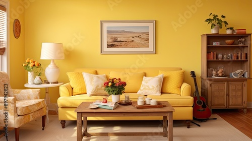 Obraz premium vintage yellow living room