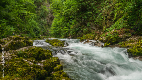 Obraz premium Vintgar gorge, Slovenia. River near the Bled lake with wooden tourist paths,...