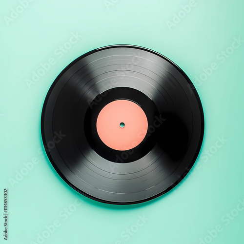 Fototapeta premium Vinyl Record on a Mint Green Background: Vintage Music Decor