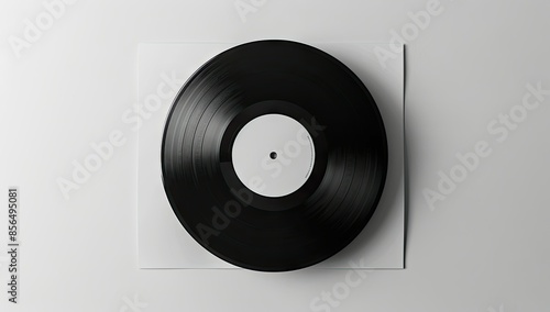 © diwa, Obraz premium Vinyl Record on White Surface Mockup