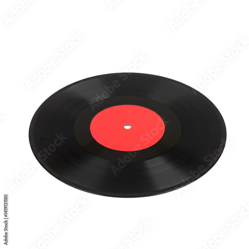 © Mumtaz, Fototapeta premium Vinyl Record with Transparent Background, Red Label, Audio, Music, Analog, Disc, Retro, Vintage, Classic, Sound, Groove, Spin, Playback, Black, Red, Graphic Resource, Hobbies, Leisure, Nostalgia