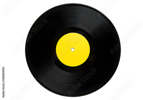 Fototapeta premium Vinyl Record with Yellow Label on Black Background Isolated Transparent