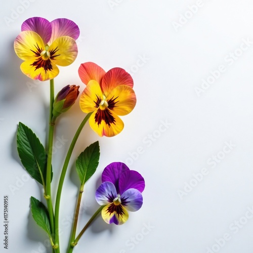 Fototapeta premium Viola flowers on a white surface with a subtle gradient, gradient, nature