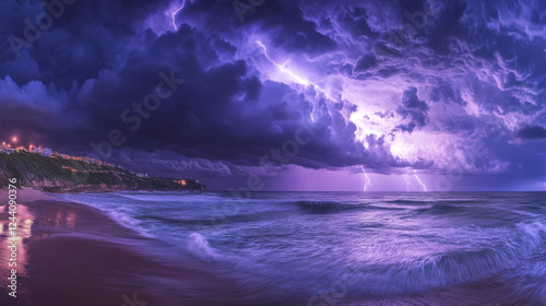 © hajimammada, Obraz premium Violent Ocean Waves Under a Dark Stormy Sky