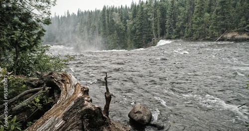 © vectorfusionart, Fototapeta premium Violent river in forest then waterfall
