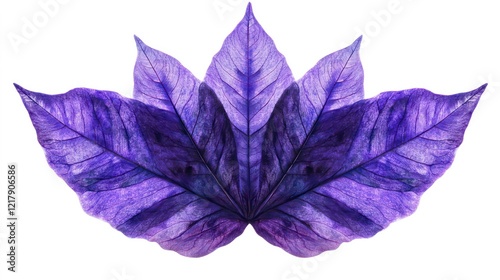 Obraz premium Violet-colored leaf with symmetrical design and vibrant textures, isolated on...