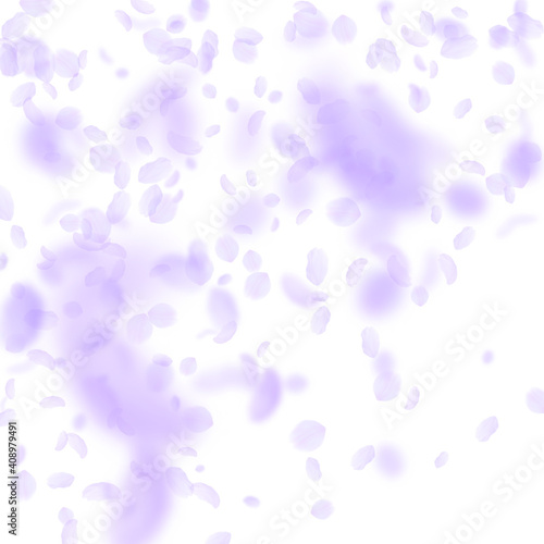 © Begin Again, Naklejka premium Violet flower petals falling down. Precious romant
