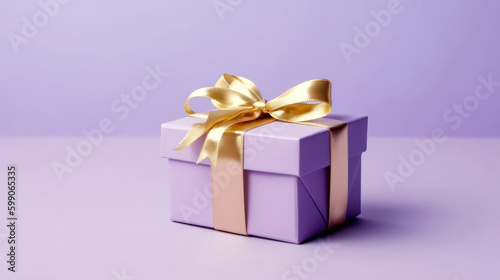 © olegganko, Obraz premium Violet gift box background. Illustration AI Generative.