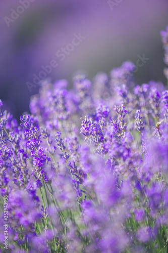 Obraz premium Violet lavender field in Provence with place for text on the top