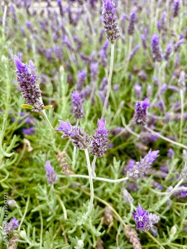 © Anna, Obraz premium Violet lavender flowers isolated close-up on lavender field background