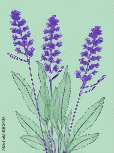 © LiizaVa, Naklejka premium violet lavender flowers on pale green background