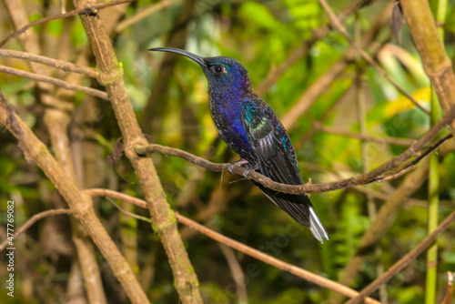 © Jim, Fototapeta premium Violet Sabrewing Hummingbird (Campylopterus hemileucurus) Perched in Costa Rica