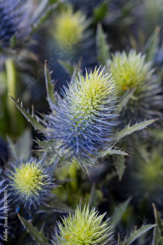 Obraz premium Violet thistle with green leaves