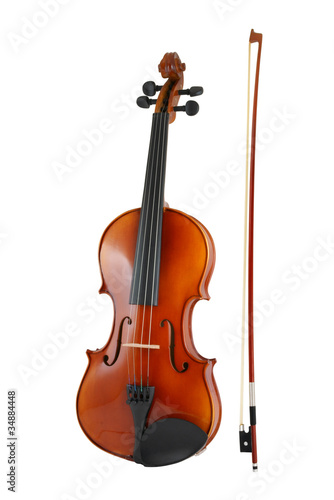 © Valerii Evlakhov, Fototapeta premium Violin and bow isolated on white background