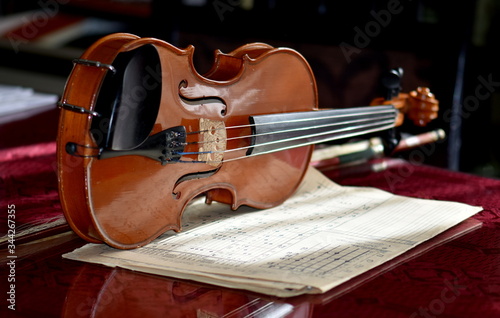 © Biljana Nik, Fototapeta premium violin and bow on white background