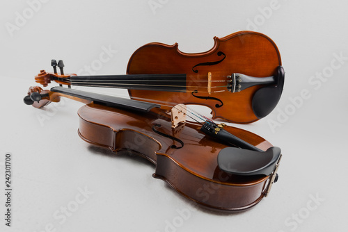 Fototapeta premium Violin and viola put on white background,During the practice break time to prepare For the concert.