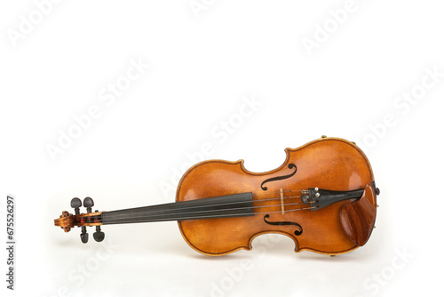 Fototapeta premium Violin classical string wooden musical instrument, isolated on white background with space for your text or design