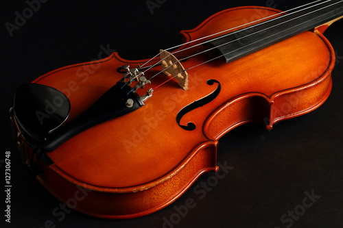 © rasilja, Fototapeta premium Violin Close-Up on Black