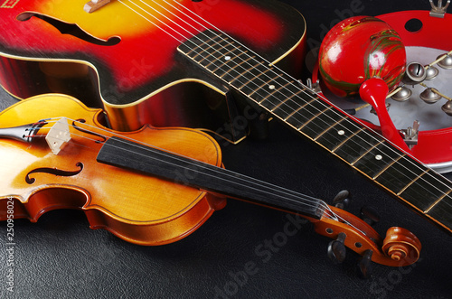 © yrafoto, Fototapeta premium Violin, guitar, maracas.