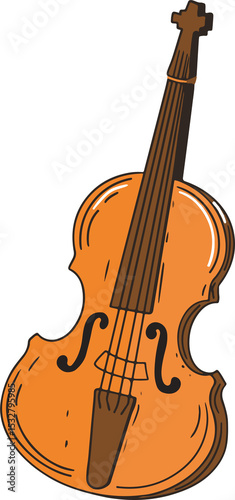 Fototapeta premium Violin illustration showing cartoon style wooden instrument with f-holes on transparent background