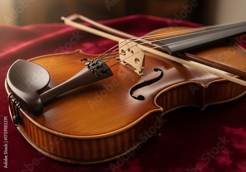 © SARKAR, Fototapeta premium Violin on red velvet cloth