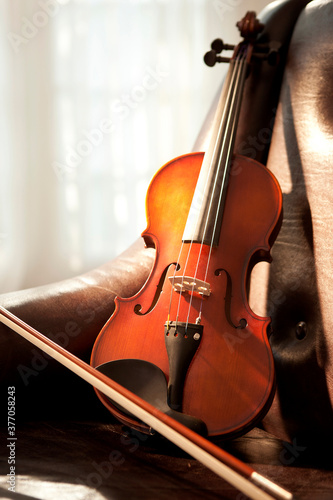 © Image Republic, Fototapeta premium violin on the leather sofa