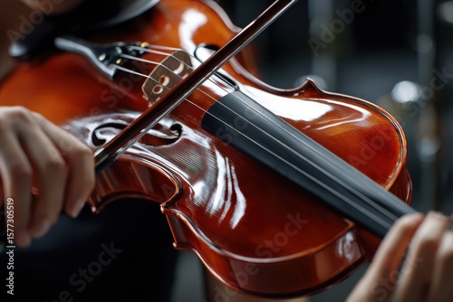 Fototapeta premium Violin performance during a concert in a lively indoor setting on a summer...
