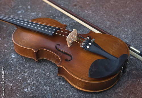 Fototapeta premium Violin put on background,show detail of acoustic instrument,