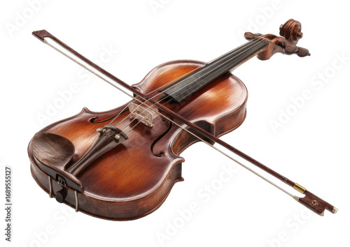 © Upin, Fototapeta premium Violin with bow angled diagonally