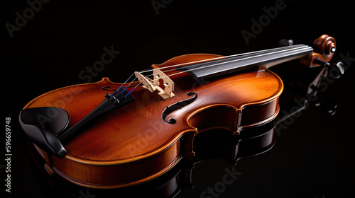 © coco, Fototapeta premium Violin with bow isolated on black background with clipping path, generative ai