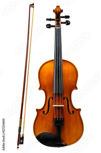 © AGCuesta, Fototapeta premium Violin with bow isolated on white