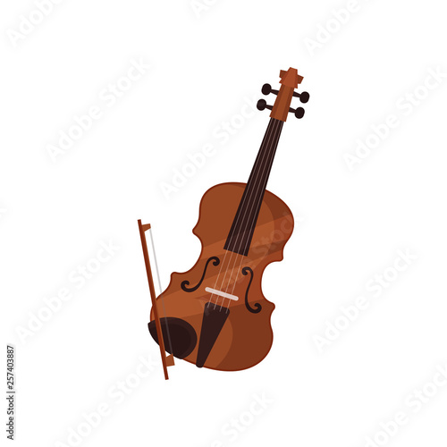 © Happypictures, Fototapeta premium Violin with bow on white background. Happy Hanukkah.