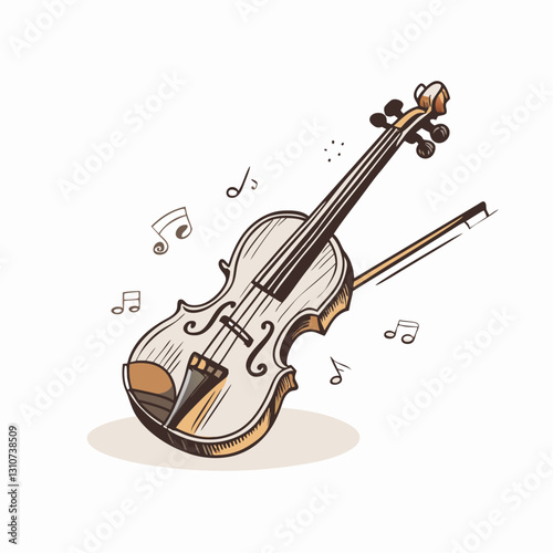 © Marousia, Obraz premium Violin with musical notes on beige background