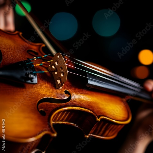 © Big9869, Fototapeta premium Violinist Performing Closeup at Night Concert